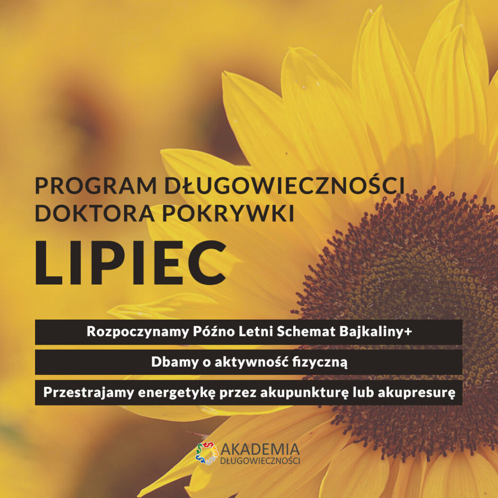 Lipiec to miesiąc, w którym rozpoczynamy Późno Letni Schemat Bajkaliny+. W dniach od 20 do 30 lipca przyjmujemy dwa razy dziennie po kapsułce.