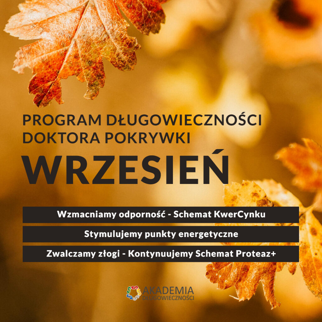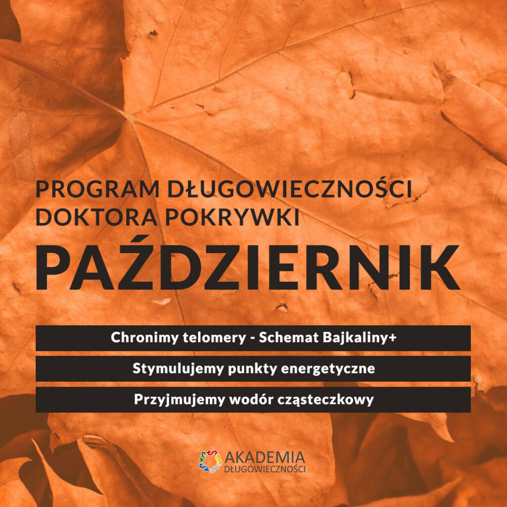 Październik to Schemat Jesienny Bajkaliny+ – odgrywa ona istotną rolę w ochronie telomerów, co wspiera procesy regeneracyjne i spowalnia starzenie komórkowe. Jej adaptogenne właściwości pomagają organizmowi lepiej radzić sobie ze stresem, a działanie neuroprotekcyjne wspiera zdrowie układu nerwowego.